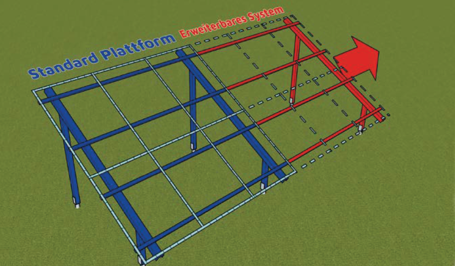 Specialna aluminijasta podkonstrukcija, zasnovana posebej za vijačne temelje, je prilagojena pogojem ustreznega sistema, da se ustvari pravi naklon in usmeritev za doseganje optimalne učinkovitosti. Vmesnik tvori tirnico K2 sina, nakar se posamezni Moduli v samo nekaj korakih vgradijo na konstrukcijo.